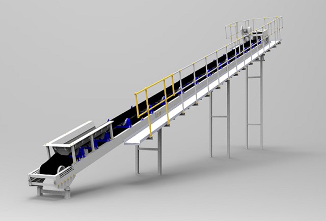 KS系列波状裙挡边皮带输送机适用于大角度物料输送,广泛用于砂石、矿石、矿粉、粮食、煤炭等散状物料运输。